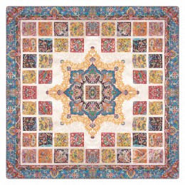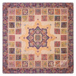 رومیزی مربع طرح لاجورد رنگ کرم سنتی