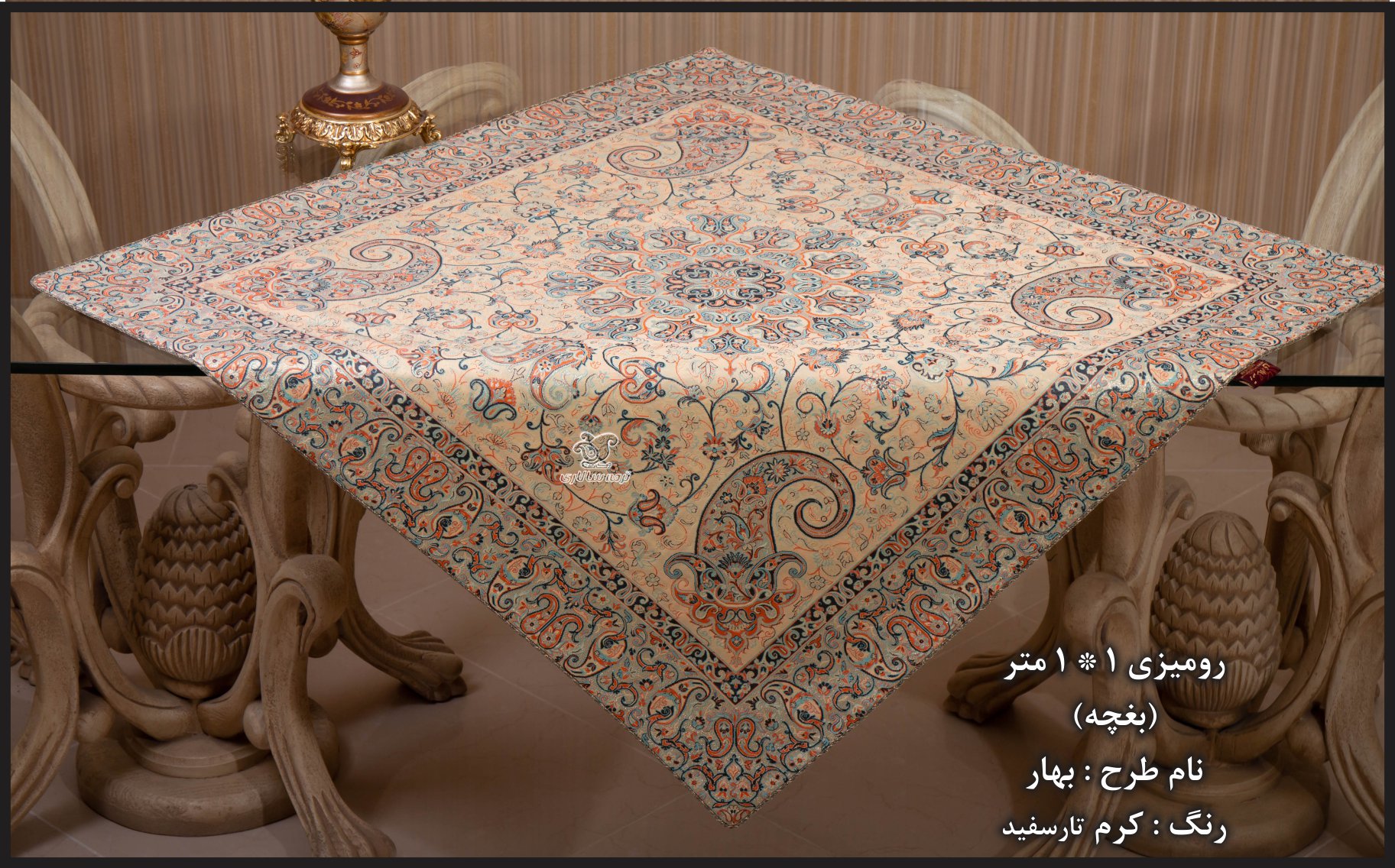 | رومیزی مربع طرح بهار رنگ کرم تارسفید | |